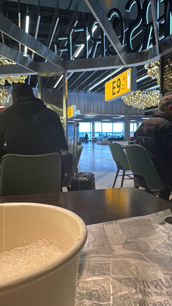 Ich hätte total gerne Fotos von unserem Getränk im Flugzeug hochgeladen, allerdings gab es dabei einige technische Schwierigkeiten. Aber hier als kleiner Aufhänger: Umstieg in Amsterdam.